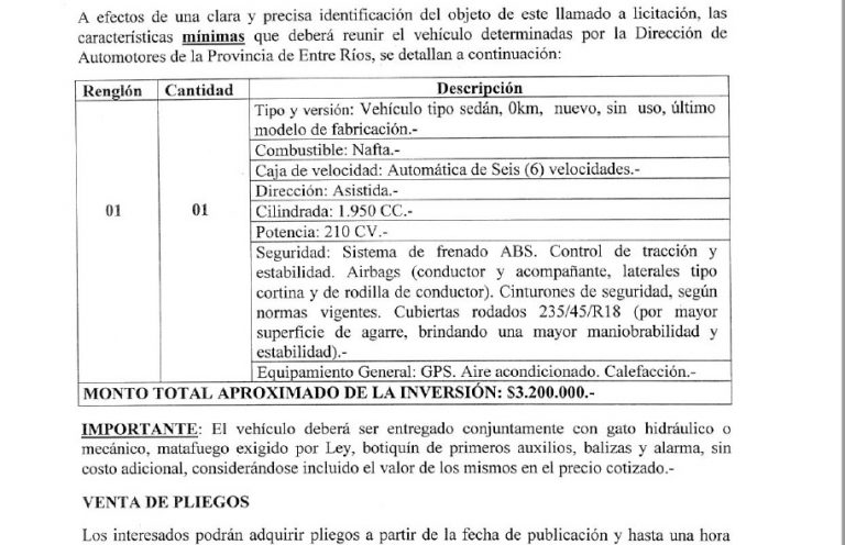 Malestar por una licitación para un vehículo por una cifra millonaria