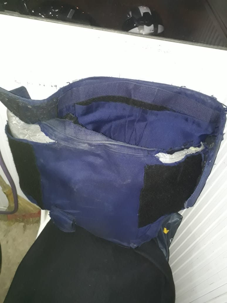 En fotos enviadas a este Portal por un funcionario que pidió que se resguardara su nombre por temor a represalias de parte de las autoridades, puede verse cómo los chalecos antibalas se encuentran muy gastados y rotos.