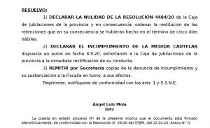 Una vez más, la Justicia resolvió en contra del gobierno provincial, declaró la nulidad de la resolución que recorta a jubilados y exhortó a la Caja de Jubilaciones a cumplir la medida cautelar. El juez Ángel Moia declaró nula la resolución 4484/20 de la Caja de Jubilaciones, en la que … Sigue leyendo Moia a Rodríguez Signes, Scarione y Bordet: “los fallos no se interpretan, se aplican”