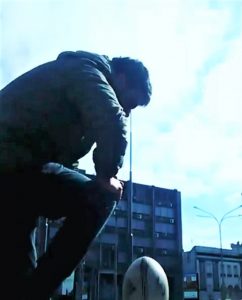 Tal es la similitud de los mástiles de la vergüenza con la H que un usuario de las redes sociales fue más lejos este fin de semana y se animó a posar con la pelota de rugby y los postes, preparándose para patear “a los palos”.
