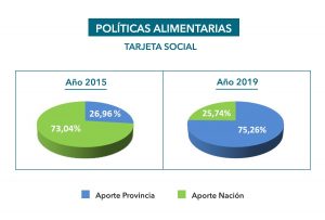 Tal es el caso de los fondos enmarcados en el denominado Plan Nacional de Seguridad Alimentaria Abordaje Federal (conocidas como la prestación Tarjeta de Riesgo Social), para el cual en 2015, al inicio de la gestión, el Estado nacional aportaba el 73 por ciento del presupuesto de este programa, mientras que el gobierno entrerriano destinaba el 27 por ciento restante.