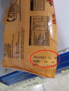Otra irregularidad es que algunos de los alimentos, según puede apreciarse en las imágenes enviadas por los vecinos, presentan tanto la fecha de vencimiento como el número de lote borradas.