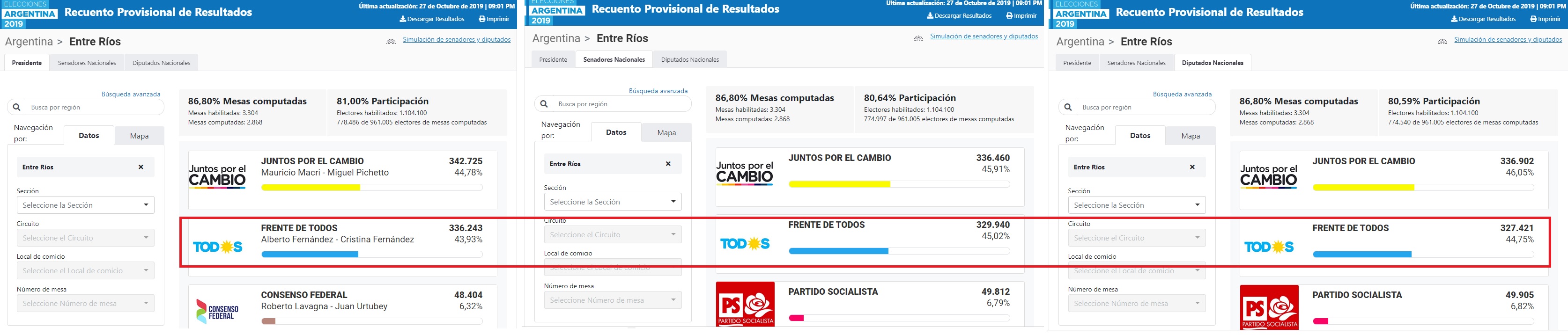 Escrutadas el 91,79% de las mesas entrerrianas, es notorio el corte respecto de las candidaturas a presidente y a legisladores nacionales.