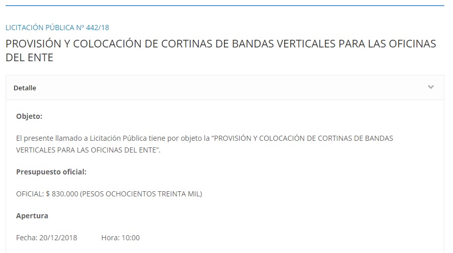 Por la provisión y colocación de cortinas en las oficinas se gastó la suma de $ 830.000.