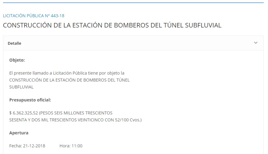 Buscando información oficial en la página web del ente biprovincial encontramos la LICITACIÓN PÚBLICA Nº 448/19 de fecha de apertura 08-03-2019 denominada “Construcción de edificio Centro de Interpretación”, el cual, según nos dijeron en el Túnel se corresponde al Museo aunque se lo oculta con dicha denominación (Centro de Interpretación).