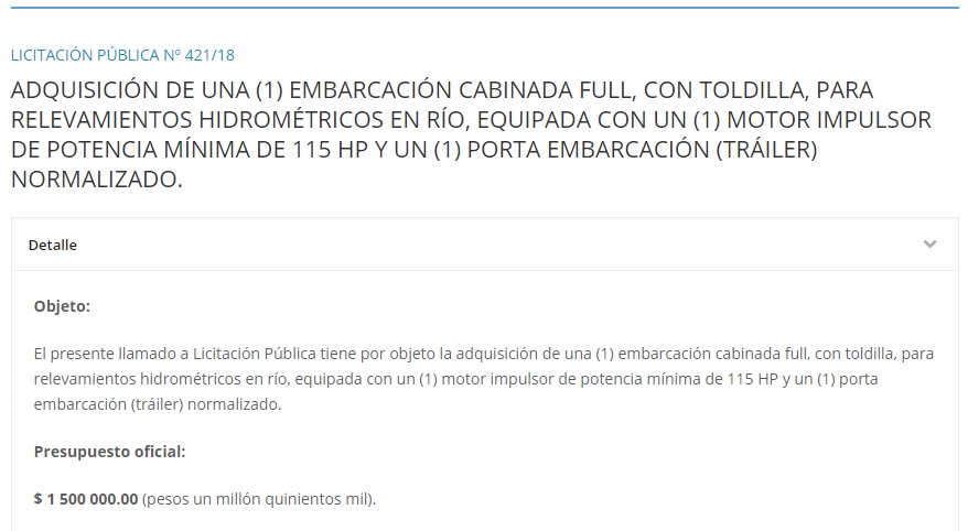 Entre las contrataciones ociosas e inútiles también aparece una lancha, en aquel momento, mayo del 2018, se desembolsó $ 1.500 000, es decir 60 mil dólares, hoy supera ampliamente el doble.