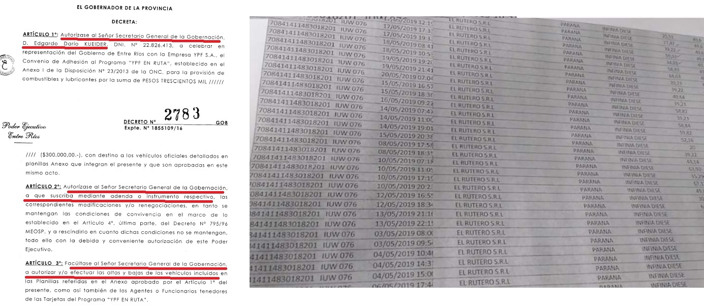 El alta y baja lo hace Kueider, lo mismo que la autorización de los vehículos y el último control de la firma de los Decretos.