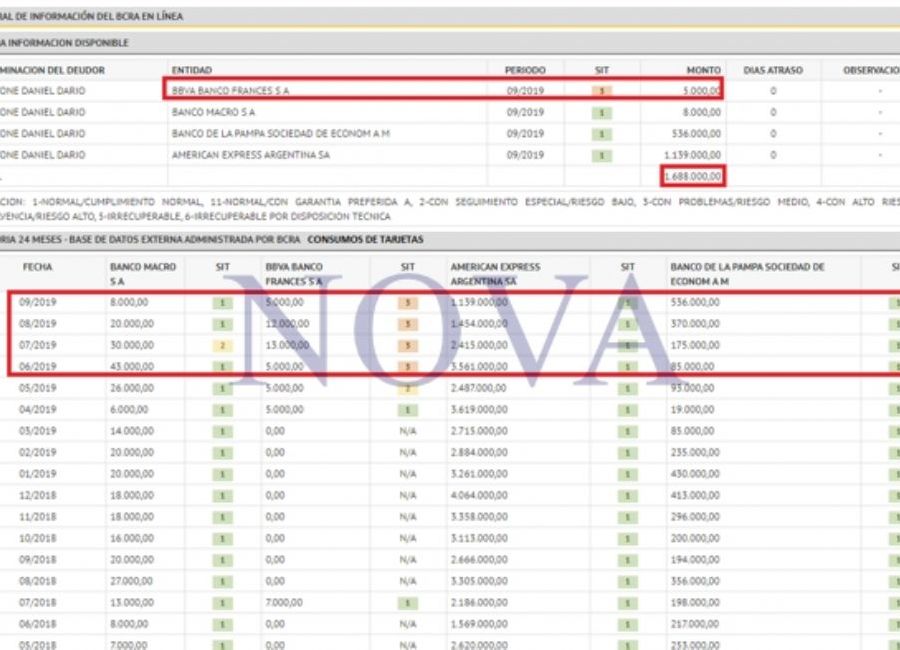 Asimismo, se conoció que posee un consumo de tarjeta de crédito de un millón seiscientos ochenta mil pesos, pero está en situación 3 con American Express por una deuda importante.