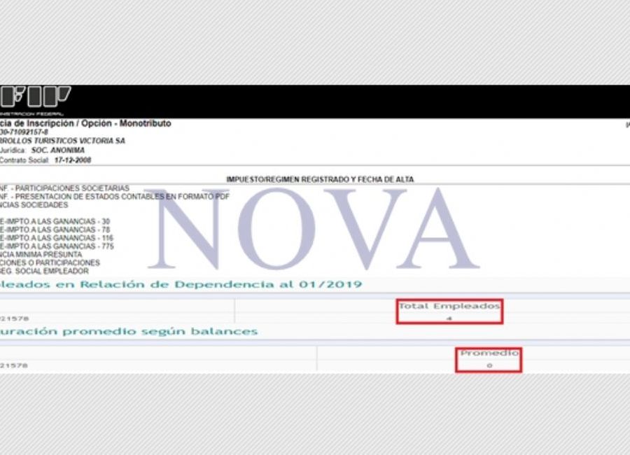 Cuenta con otra firma, denominada Desarrollos Turísticos Victoria, y se trata del hotel que también es con casino. Tiene 4 empleados y el balance es cero. Tampoco está bancarizado.