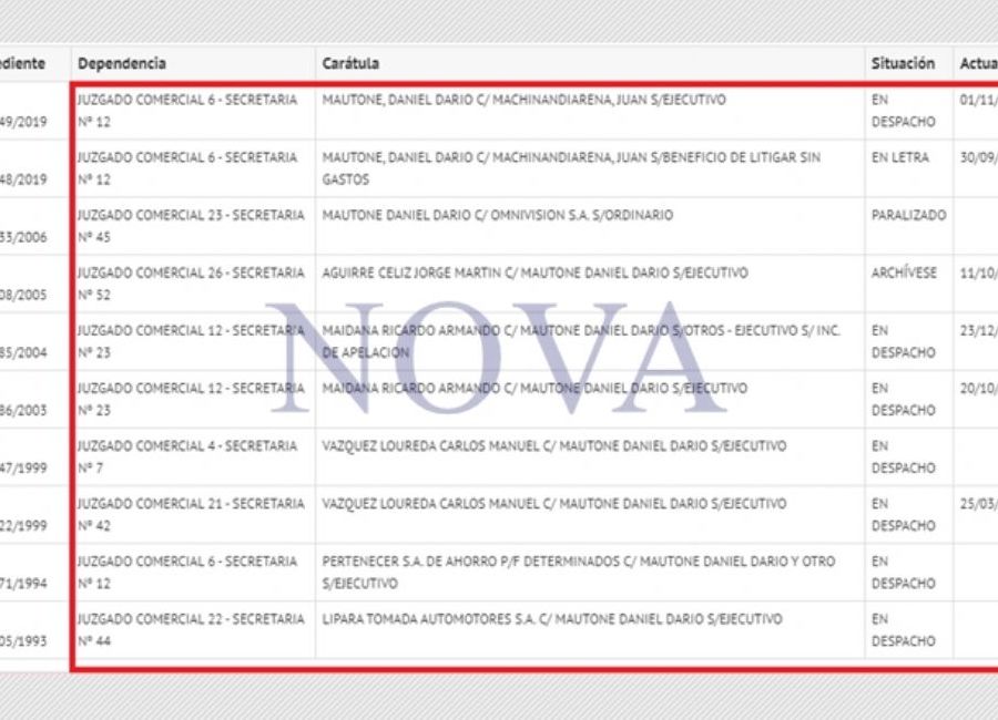 Como si fuera poco, tiene varios juicios que datan desde el año 1993 a la fecha. En este 2019 cuenta con dos iniciaciones legales en su contra, y cinco juicios ejecutivos.