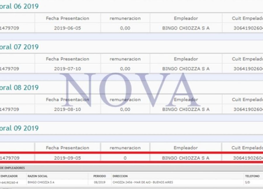 En el “prontuario” de Mautone publciado por los medios nacionales también aparece otra irregularidad: el empresario millonario aparece como empleado de Bingo Chiozza S.A..