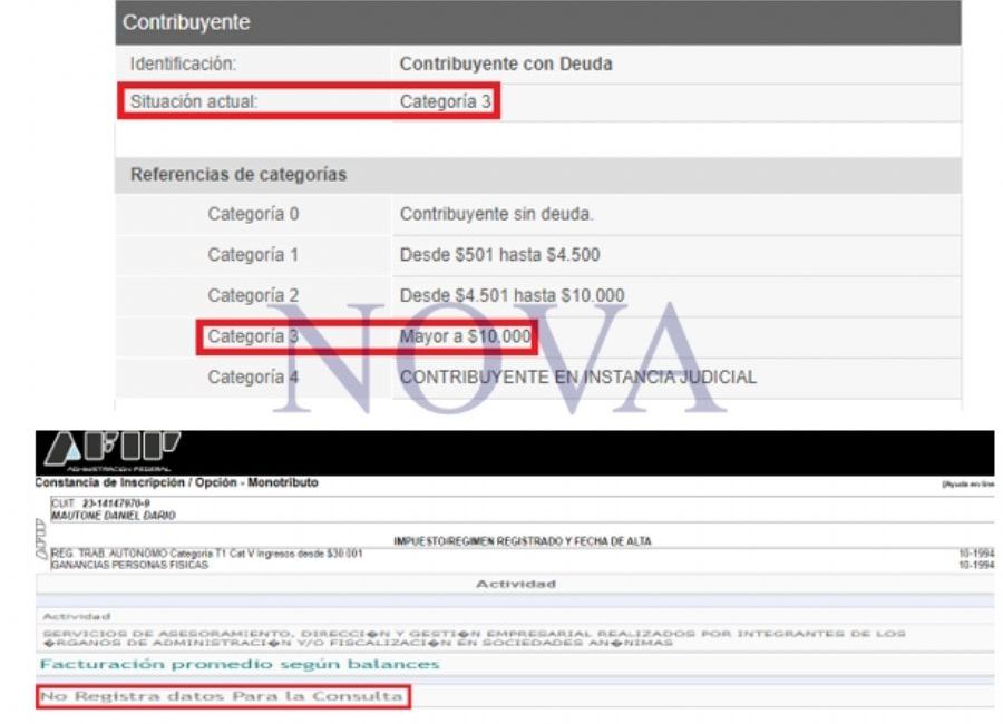 Mautone se encuentra en situación 3 de deuda con la Agencia de Recaudación de Provincia de Buenos Aires, por una suma superior a los 10 mil pesos. Como persona física, desde el 2015 a la fecha, nunca presentó un balance.