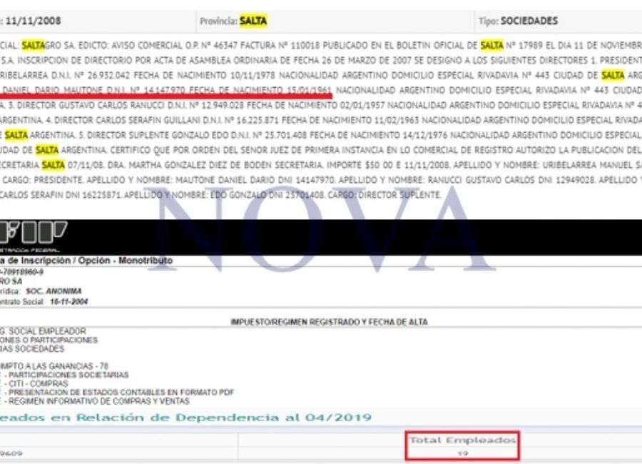 Otra de las empresas, llamada María del Mar S.A., señalaron que ganaron 147 mil pesos. No pueden abonarles a los 3 empleados y tampoco están bancarizados. También cuenta con otra, Asebel S.A., donde tiene 12 empleados, pero la AFIP le bloqueó el CUIT, y está trabajando en negro. Estás dos sociedades, relacionadas al campo.