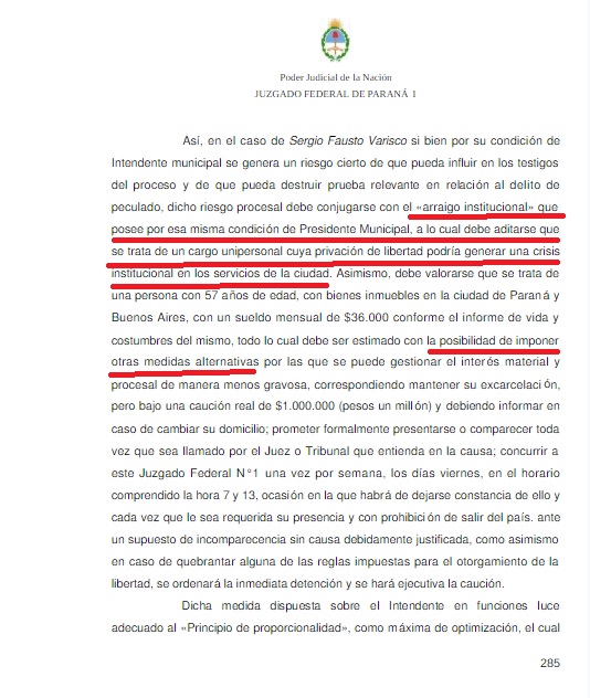 En el caso del ilícito de Varisco, sumamente argumentada hubiera estado su privación de libertad ya que se trata de uno de los más graves contenidos en la ley de estupefacientes, sin embargo, el respeto de las instituciones y la garantía de la gobernabilidad en la capital entrerriana primaron en el magistrado.