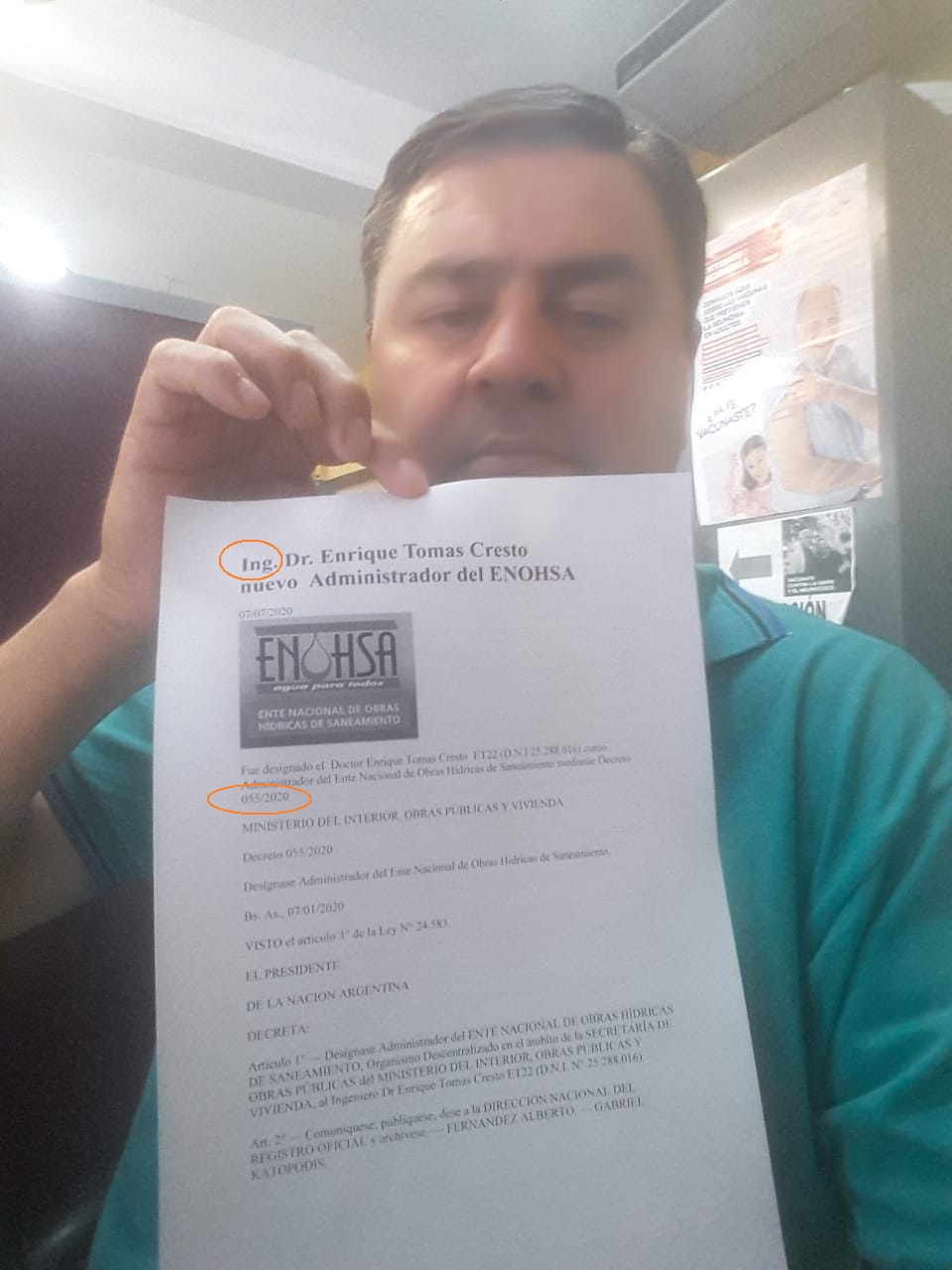 En horas del mediodía, cuando la noticia ya había sido oficializada, desde Concordia aparecía el decreto de designación de Cresto en el ENOHSA.