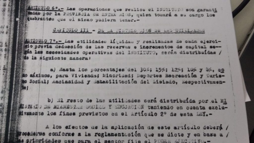 *El resto (y preste atención aquí el lector), serán distribuidas por el Ministerio de Bienestar Social y Educación teniendo en cuenta los fines previstos por el Instituto.
