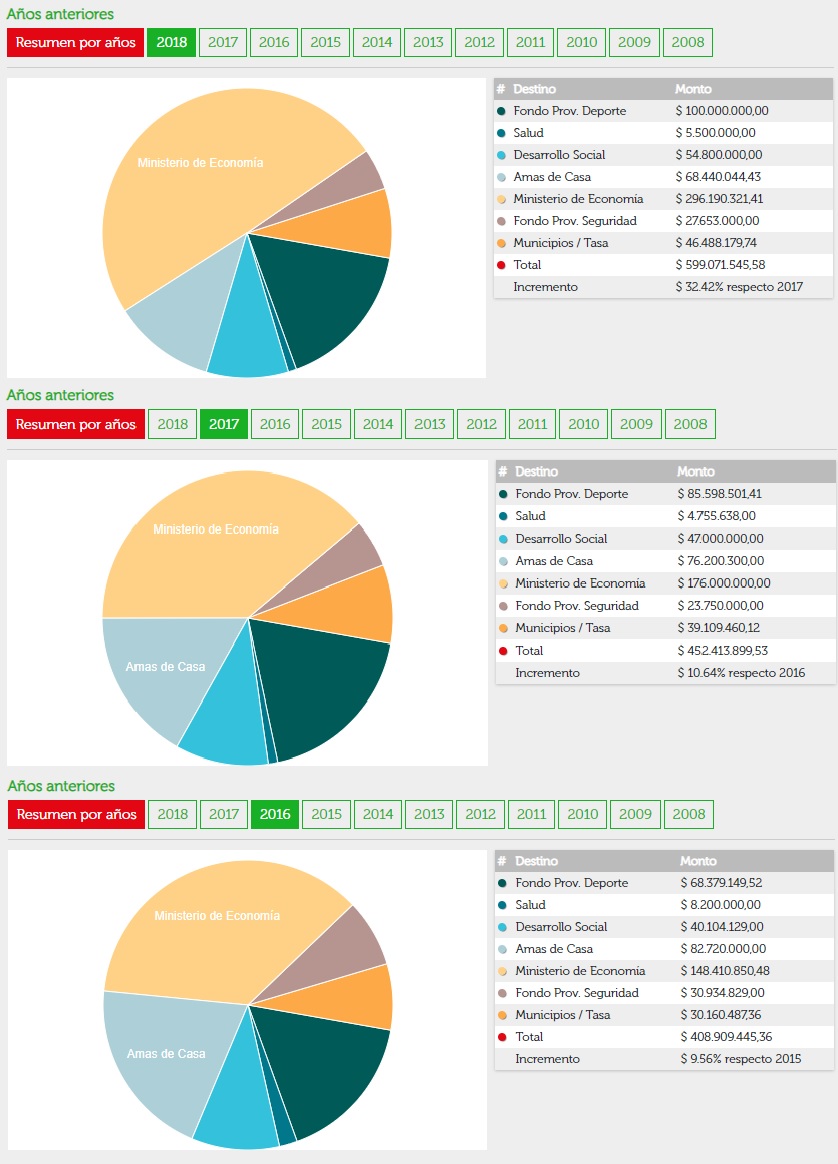 Analizando un poco más detenidamente los números del organismo del juego, se observan que durante cuatro meses consecutivos se mantuvo la cifra destinada a la repartición en 24 millones de pesos.