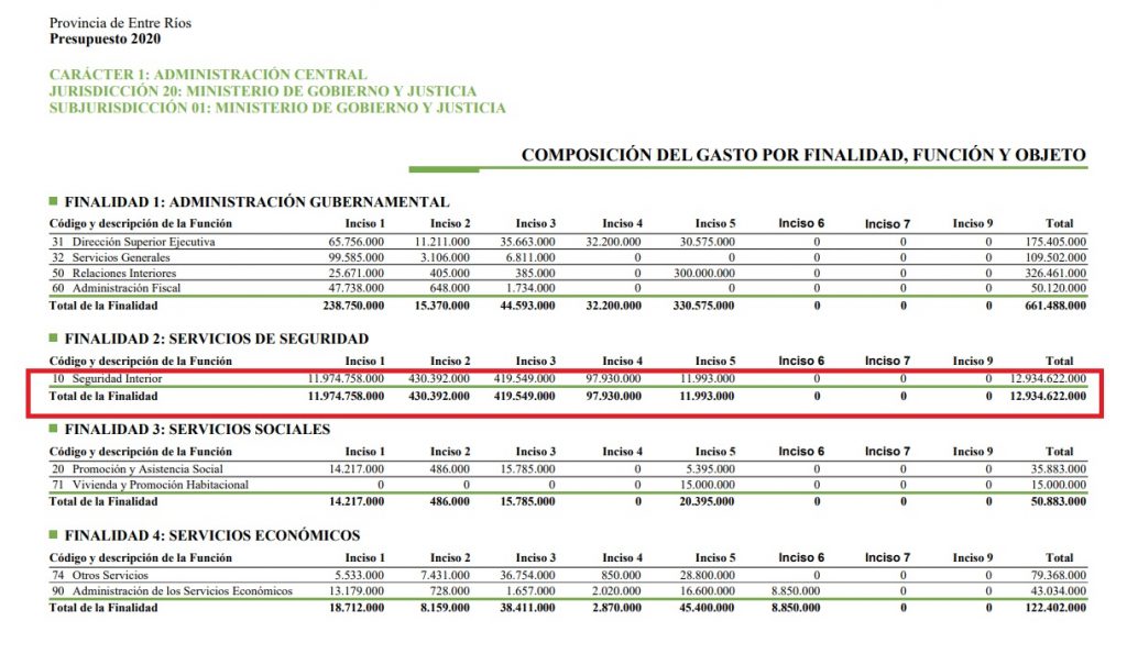 Un ministerio que, tiene previsto para este 2020, la suma más de 14 mil millones de pesos, de los cuales 12 mil millones deberían destinarse en seguridad, cuantiosa suma que por ahora, y hace un largo transcurso en el tiempo, no se la ha visto puesta en las calles para combatir a la delincuencia, al menos así se desprende del notorio incremento en los índices de criminalidad en la provincia.