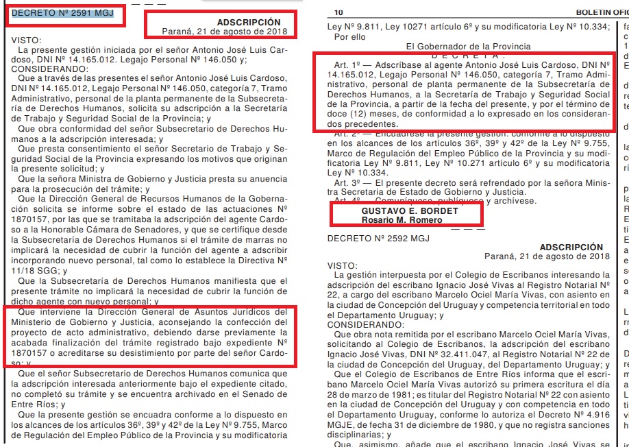 Hace unos muy pocos años atrás, la propia Rosario Romero, en persona, según trascendió desde la secretaria de trabajo, pedía el beneficio de la adscripción para Cardoso, el cual dejaba de cumplir funciones en la subsecretaria de derechos humanos, para pasar a la referida secretaría.
