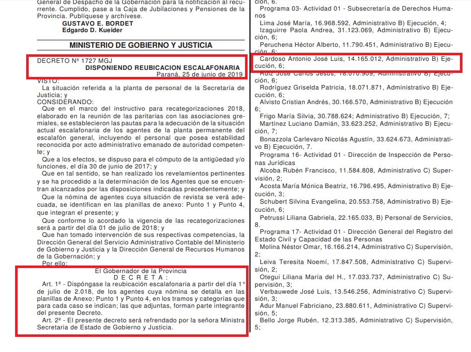 No solo ingresó a la administración pública, sino que continuó por todos estos años cumpliendo funciones, contando con la venia, los privilegios y protección de las máximas autoridades provinciales.