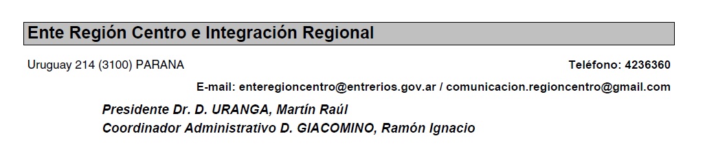 Con la salida de Martin Uranga que desembarcó en el Túnel, se produjo la vacante obligada en la presidencia del Ente Región Centro, quedando a cargo quien en aquel momento era su segundo, otro solanista, el villaguayense, Ramón Giacomino que ocupaba el cargo de coordinador administrativo, aunque no paso a ser presidente, sino que mantuvo la coordinación pero con la presidencia a cargo.