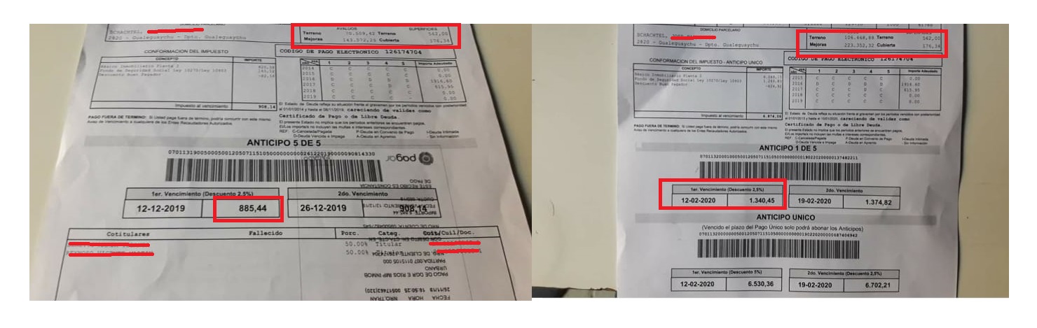 Boletas del primer vencimiento del inmobiliario 2020 enviadas a la redacción de este medio por contribuyentes indignados contradicen el anuncio del oficialismo provincial, existen incrementos de 72%.