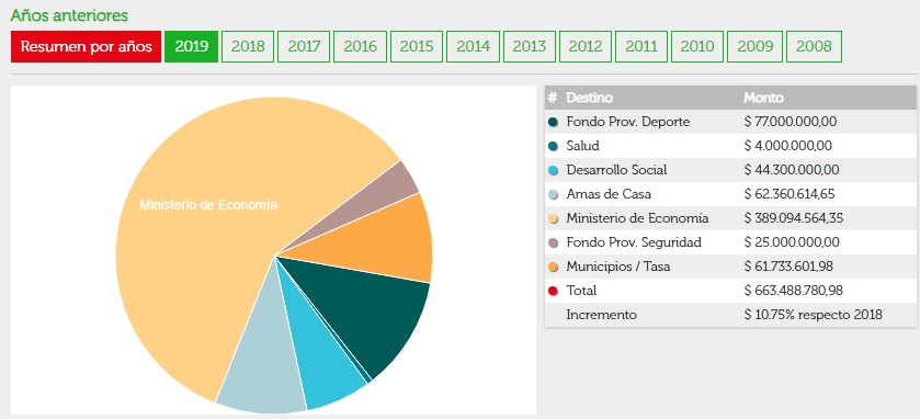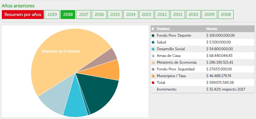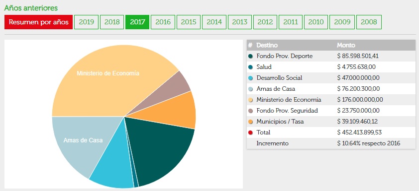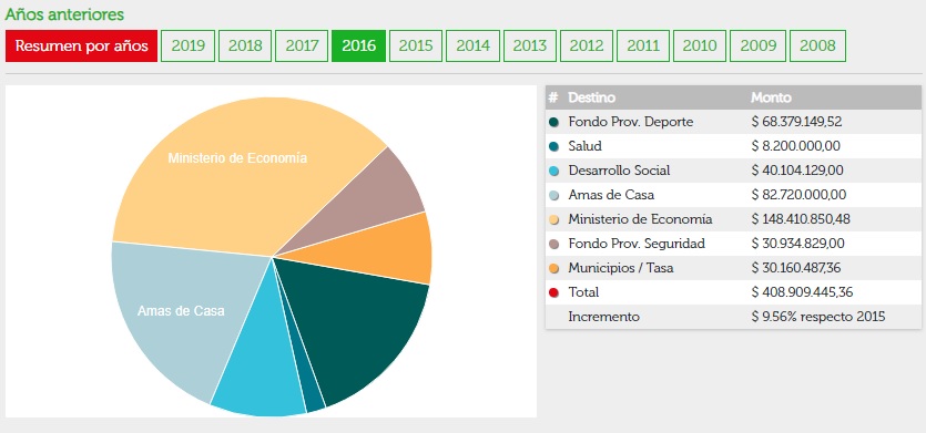 Desde que el organismo es conducido por Silvio Vivas, Guillermo Dubra y Gabriel Abelendo, los montos de dinero en concepto de aportes que fue percibiendo el Ministerio de Economía ha crecido notablemente, relegando lo destinado a la ayuda social hacia los más necesitados.