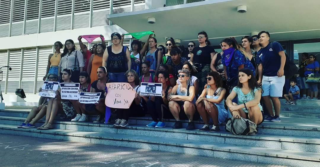 La Asamblea de Mujeres, Lesbianas, Travestis y Trans de Paraná fue la convocante para la concentración en Tribunales exigiendo la aparición de Fatima Acevedo, la joven de quien se perdió el rastro desde el domingo, cuando salió del Hogar de las Mujeres, adonde había acudido por una denuncia de violencia de género contra su pareja, y no regresó.