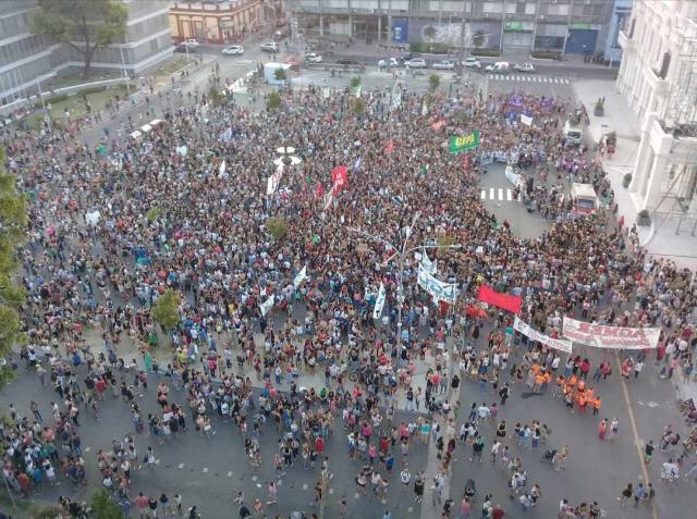 Una masiva cantidad de mujeres se congregaron este lunes por la tarde en la Plaza 1° de Mayo para participar de la tradicional movilización del 8M, que se desarrolló en un marco particular por el profundo dolor que generó el femicidio de Fátima Florencia Acevedo.