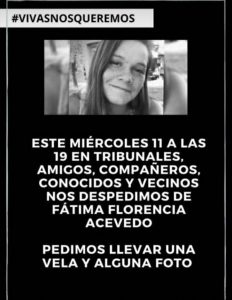 Convocan a amigos, familiares, conocidos y vecinos en general para este miércoles a las 19 horas en las puertas del palacio de Justicia para despedir a la joven asesinada que padeció la desidia del Estado.