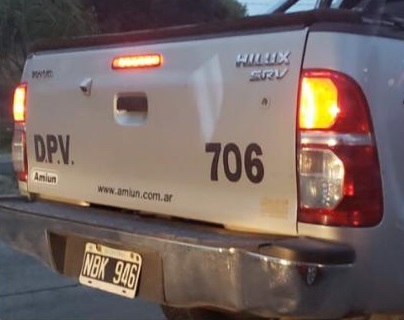 Los vecinos muy preocupados si bien no pudieron determinar quién era el negligente al volante, si identificaron el vehículo, se trata de una camioneta Toyota Hilux SRV, dominio NBK 946, número de móvil 706, enviando fotografías al respecto.