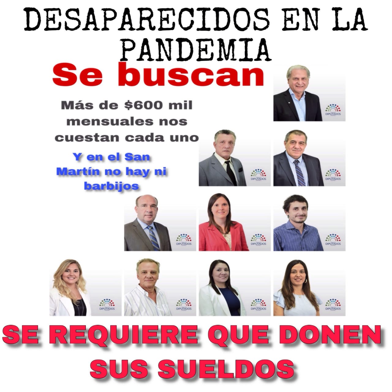 Varios de estos diputados se llevan por mes más de un millón de pesos, la cifra por si sola obliga a pensar en la cantidad de respiradores que se podrían adquirir con la misma, ni hablar del resto de los insumos básicos.