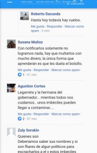 Algunos de los posteos publicados en la red social: “Tengo una inquietud. Se ha publicado en los medios y en la redes sociales, que la señora Marcela Bordet (hermana del gobernador) y su esposo Mario Legarreta se niegan a hacer la cuarentena, a pesar de que ella viajo con su hija que venia de EE.UU.dese misiones hasta Concordia. Ellos viven en el edificio Las Azaleas y la señora Bordet entra y sale del edificio cruzandose con otros habitantes del lugar y poniendolos en riesgo de contagio. La señora no acepto ayer la indicacion de la inspeccion municipal de que tenia que guardarse. hoy volvio a enojarse con autoridades que fueron a pedirle que respetara la cuarentena, y los amenazò que si no la dejaban de molestar llamaría a su hermano gobernador. Esta señora viajo mas de 400km con su hija que llegaba de N.York. las 2 son personas en riesgo y necesitan la cuarentena. pero ademas si tuviera el virus (cosa que no se sabe todavia) podria haber contagiado a todos los que viven el LAS AZALEAS, POR LO TANTO HABRIA QUE PEDIR QUE NO SOLO LE EXIJAN A ELLA SU HIJA Y SU ESPOSO HACER LA CUARENTENA, SINO QUE HABIRA QUE PONER A TODO EL EDIFICIO EN OBSERVACION, HASTA HACER EL ANALISIS Y VER QUE NO ESTAN CONTAGIADOS, CASO CONTRARIO SON UN PELIGRO PUBLICO. SER HERMANA DEL GOBERNADOR NO LE DA PRIVILEGIOS Y MUCHO MENOS PONER EL PELIGRO A TODOS LOS CONCORDIENSES”