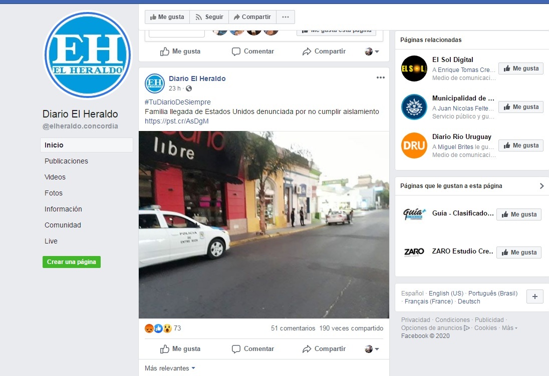 La prueba está en que otros medios de Concordia publicaron la noticia, tomando como fuente a El Heraldo, transcribiendo textual su noticia con la imagen de este miércoles, incluso puede apreciarse que en el Facebook no modificaron ni eliminaron la fotografía original.