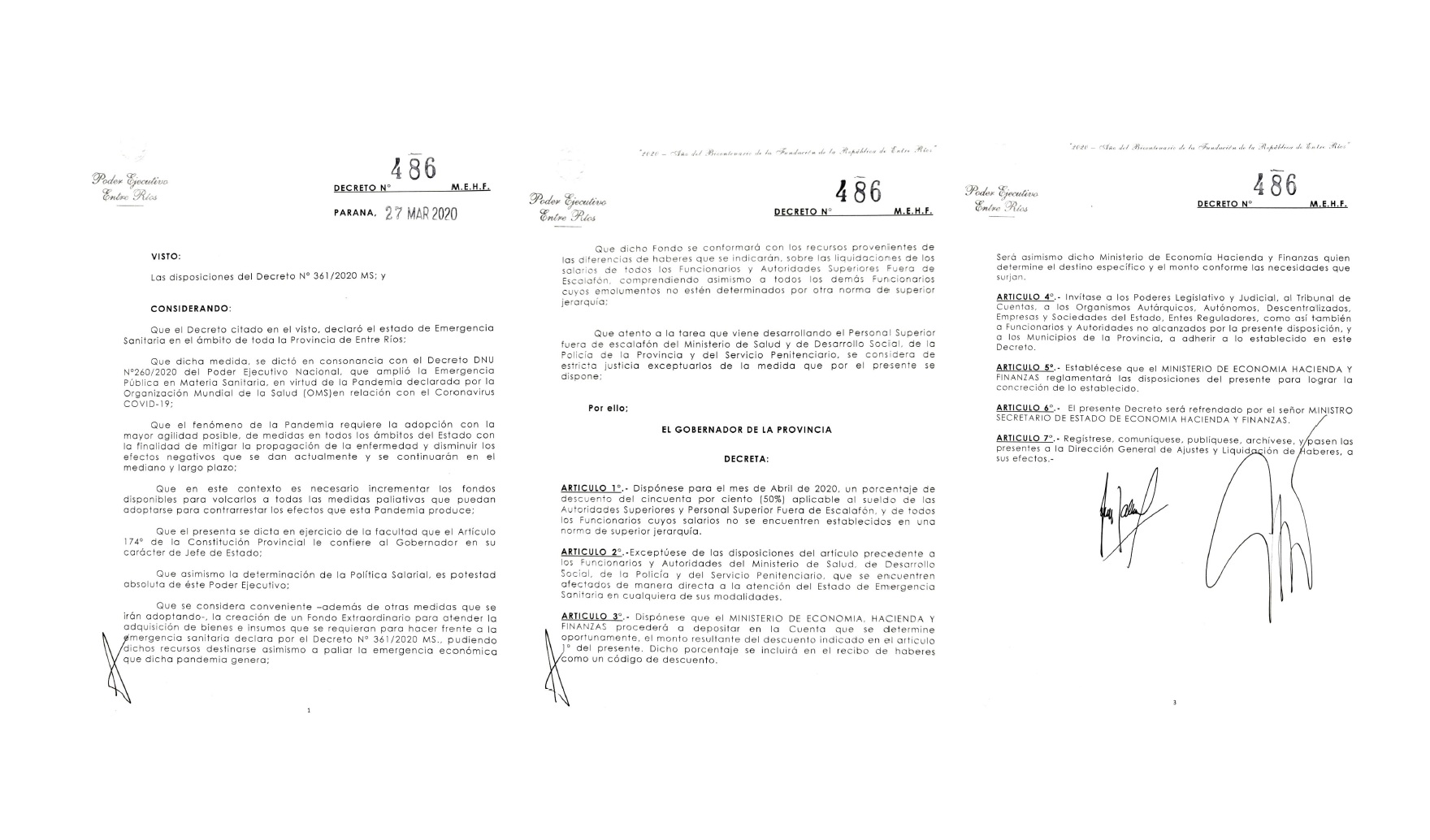 Tras varios días de fuertes presiones con gobernadores que establecían medidas respecto de los sueldos de los funcionarios, finalmente este viernes el mandatario entrerriano se quedó sin margen y tuvo que salir obligado a sumarse a las iniciativas, comunicando la reducción en un 50% para “las autoridades superiores y personal superior fuera del escalafón y de todos los funcionarios cuyos salarios no se encuentren establecidos en una norma de superior jerarquía”.