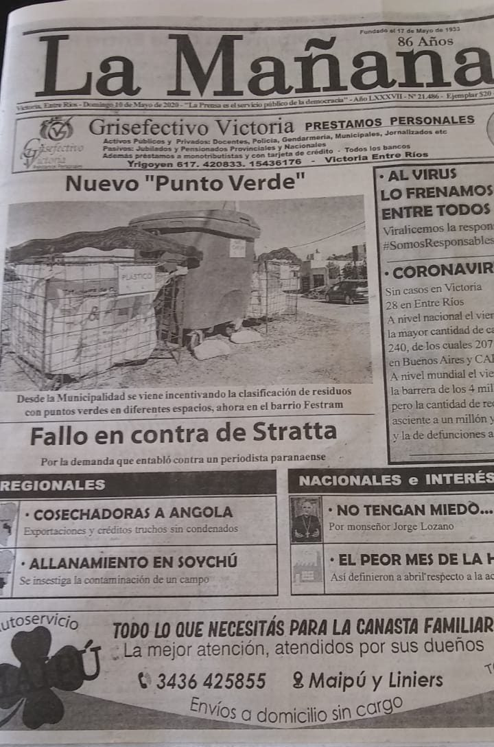 A pesar de los largos años de vida de Entre Ríos, por primera vez ocurría que una funcionaria pública, y no cualquiera, sino que la segunda persona más importante de la provincia, en aquel momento ministra de Desarrollo Social y vicegobernadora electa, Lic. María Laura Stratta, llevaba al titular de un medio a la justicia por daños y perjuicios en ejercicio de su labor.