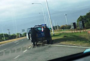 Los vecinos del Acceso Norte de la capital entrerriana fueron testigos en la mañana del domingo de un hecho insólito que involucró a una camioneta de la Policía de Entre Ríos y a tres efectivos policiales.