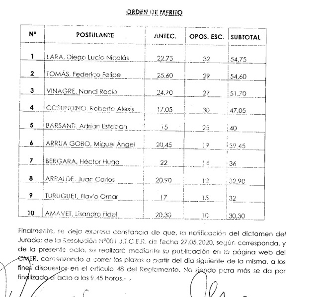 El Portal accedió a los puntos de las evaluaciones del concurso, Lara, en el puntaje de antecedentes, tenía menos que abogados preparados y con trayectoria en el propio Tribunal de Cuentas, caso del Dr. Federico Tomas, actual presidente, y de la Dra. Nanci Vinagre, asesora jurídica en el organismo.
