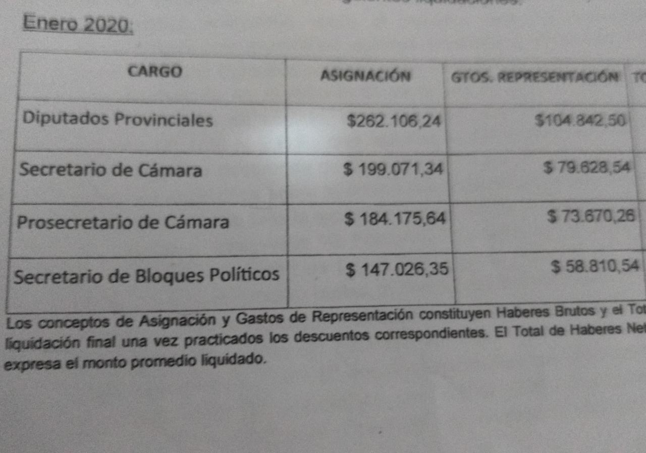De dieta, como todos, se lleva 366 mil pesos mensuales (entre asignación y gastos de representación) como ya es archi conocido en la Legislatura, la diferencia la hace con los fondos asignados en contrataciones, esos que Ángel Giano –otro integrante del podio- no quiere dar a conocer públicamente a pesar de los pedidos de informes exigiéndolos.