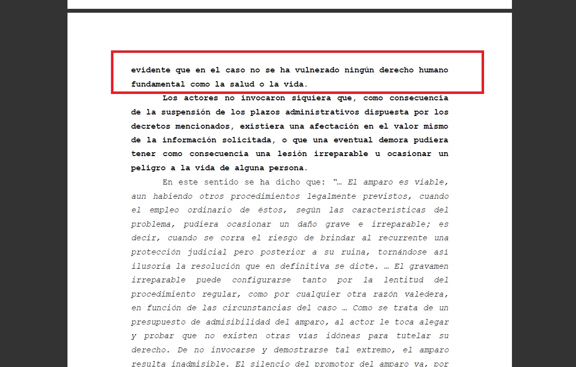 Mientras los plazos para las contrataciones millonarias y designaciones de nuevos cargos políticos si se exceptuaron, este derecho humano fundamental de los entrerrianos no, produciéndose una incerteza y, lo que es peor, el impedimento de su ejercicio, ya que los ciudadanos no saben ni pueden saber cuándo se produce el termino del tiempo que tiene el funcionario o funcionaria para responder, y consecuentemente, incluso aquella incerteza se traslada a un terreno no viable de recurrir a la justicia exigiendo el cumplimiento.