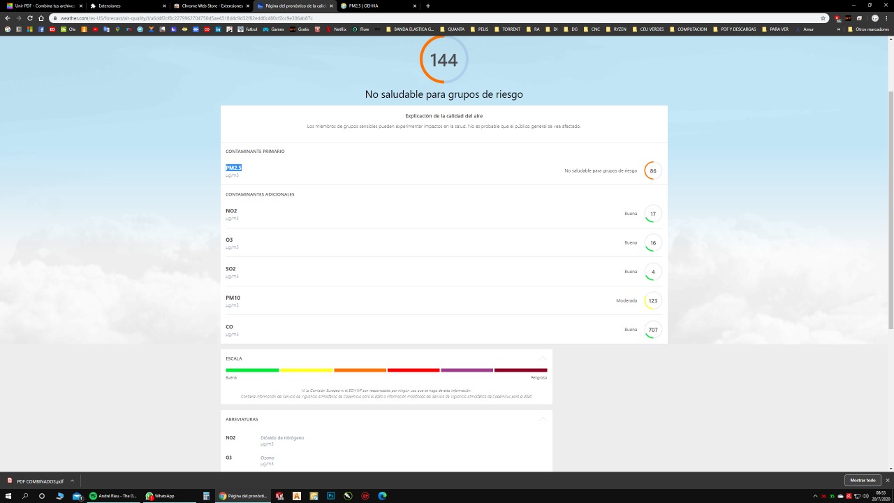 https://www.accuweather.com/es/ar/paran%C3%A1/3634/air-quality-index/3634 En ese link se puede ver, en este momento (21 hs) la calificación actual del aire en Paraná: Muy poco saludable.
