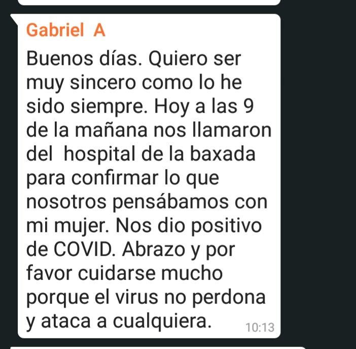 El Director Representante de los trabajadores, Gabriel Abelendo, y su mujer LC, también funcionaria del IAFAS, confirmaron que se contagiaron del virus, por lo que tampoco pueden cumplir con sus funciones en el instituto.