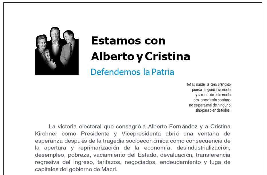 También un legislador provincial entrerriano, que asumió su banca en diciembre y representa al Frente Grande, al ver la enorme repercusión que tuvo la solicitada, se comunicó con quienes idearon la iniciativa, para saber por qué no lo habían llamado para que firmara.