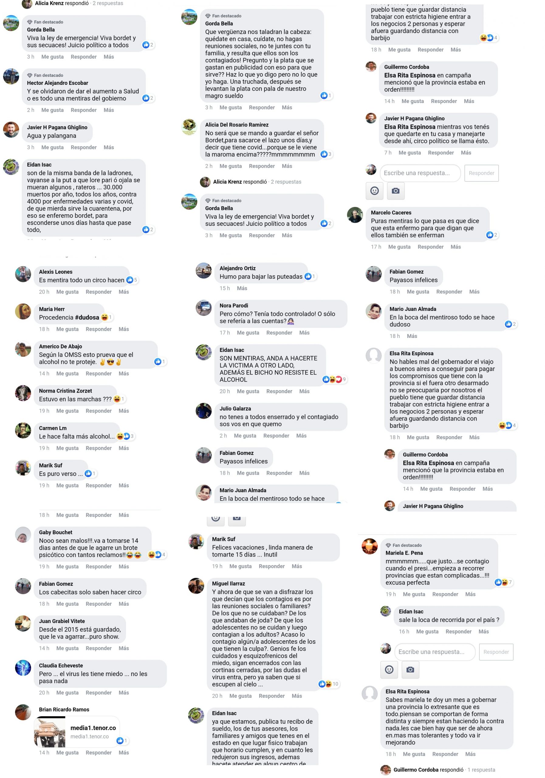 Más allá de esto, retomando el análisis de los casos positivos de parte de la cúpula provincial, lo cierto es que en las redes se habla de una estrategia de marketing, poniéndose de manifiesto el descreimiento existente en los ciudadanos con respecto a las pronunciaciones de la dirigencia política entrerriana, en el caso concreto, hacia Bordet y Giano.