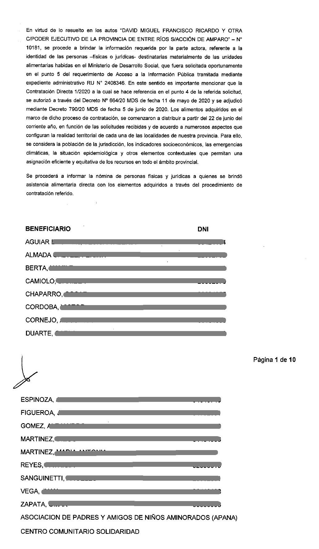 Tras la confirmación del STJ, al ministerio no le quedó opción que remitir a la ciudadana “el listado” (las comillas son intencionales) de personas físicas y/o jurídicas –con personería o no- receptoras del beneficio alimentario.
