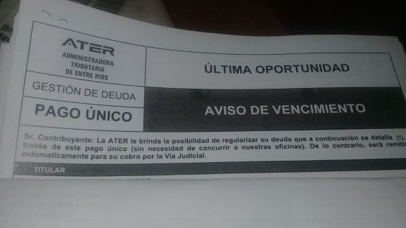 CompartirLos contribuyentes entrerrianos se ven seriamente afectados en sus actividades laborales y en sus ingresos por la pandemia, pero como el gobierno no frenó la fiesta, alguien la tiene que pagar. En estos días, los contribuyentes de la provincia recibieron avisos de vencimientos de diferentes impuestos e intimaciones por parte … Sigue leyendo Recaudar a toda costa: ATER envió intimaciones de pago de impuestos