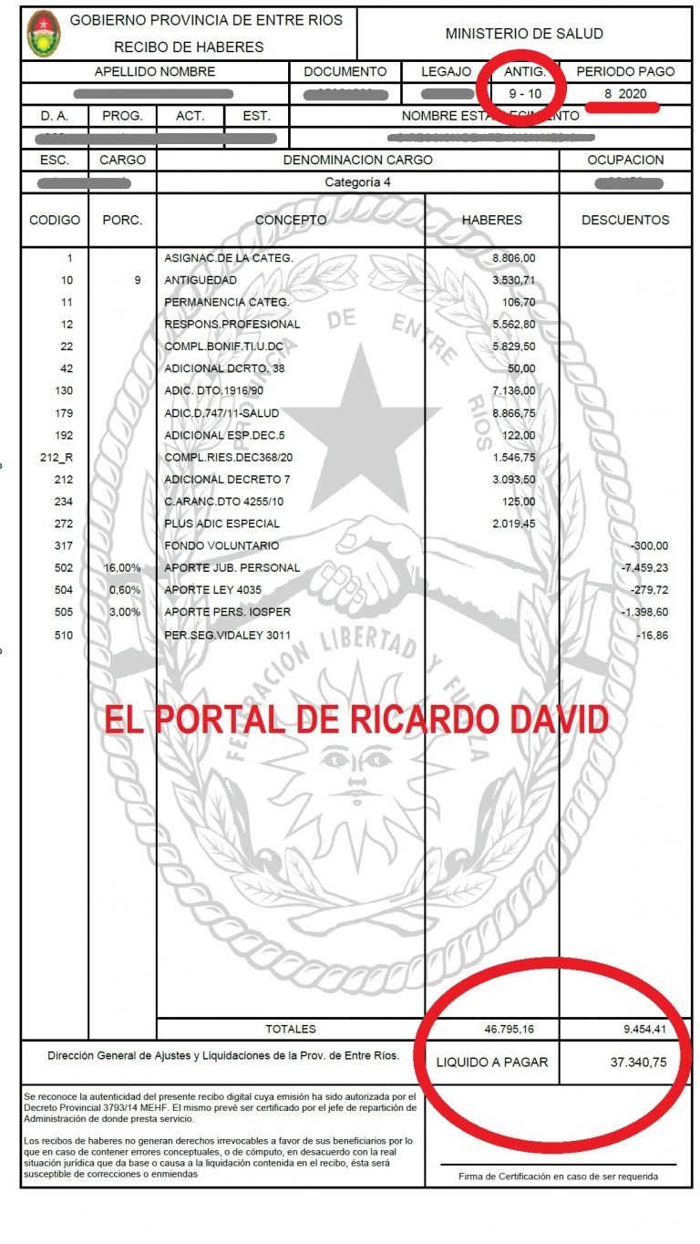 37 mil pesos mensuales de bolsillo percibe un medico abocado a un efector publico entrerriano.