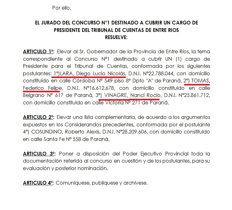 Este viernes, de manera exprés el concurso quedó concluido, el jurado tomó entrevistas contra reloj, el último paso que restaba, en el mismo día ya tenía las ternas para los dos cargos en disputas.