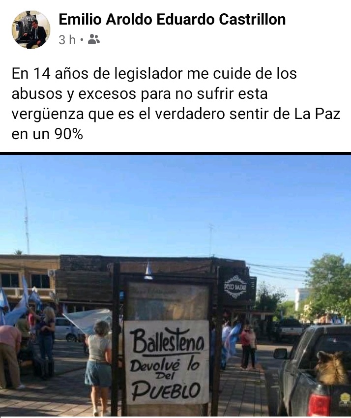 Ballestena fue uno de los apuntados en La Paz: “¡devolvé lo del pueblo!”