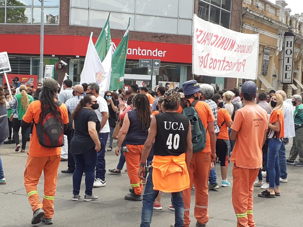 La movilización en convocada por los gremios que nuclean a los trabajadores municipales (ATE, APS, SPOSER) que han conformado el Frente Sindical Municipal.